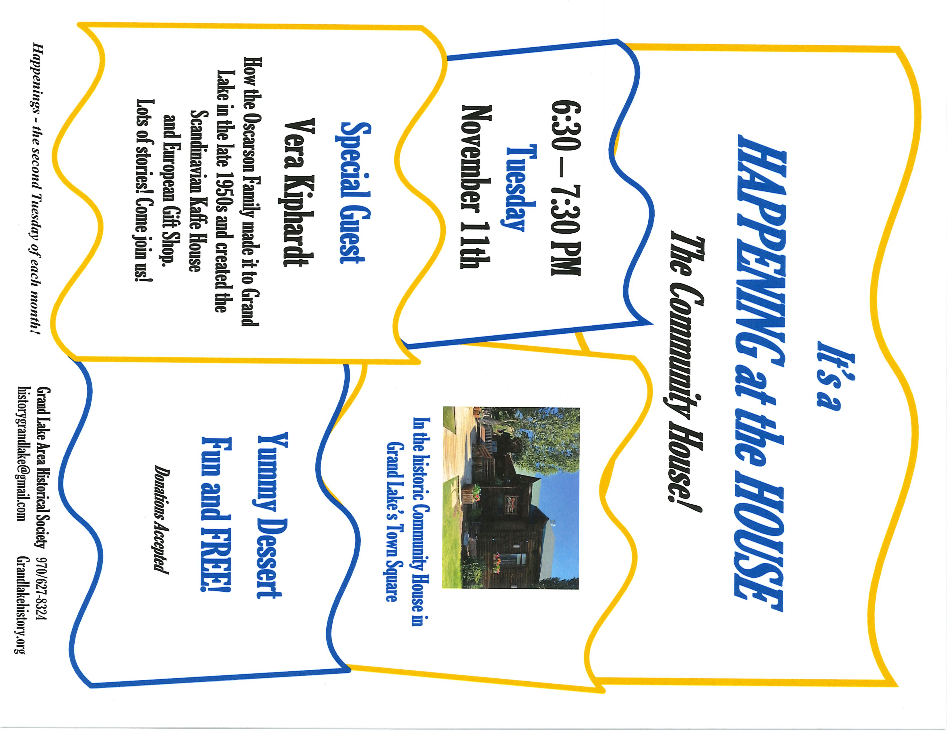 Tales of Grand Lake's Past are live the second Tuesday of every month in the Community House in Town Square. 6:30 to 7:30 pm