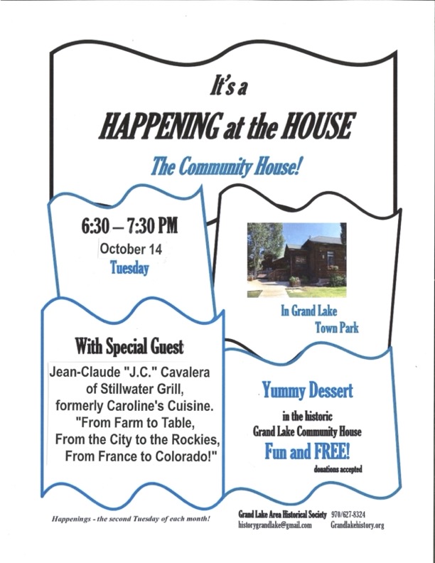Tales of Grand Lake's Past are live the second Tuesday of every month in the Community House in Town Square. 6:30 to 7:30 pm