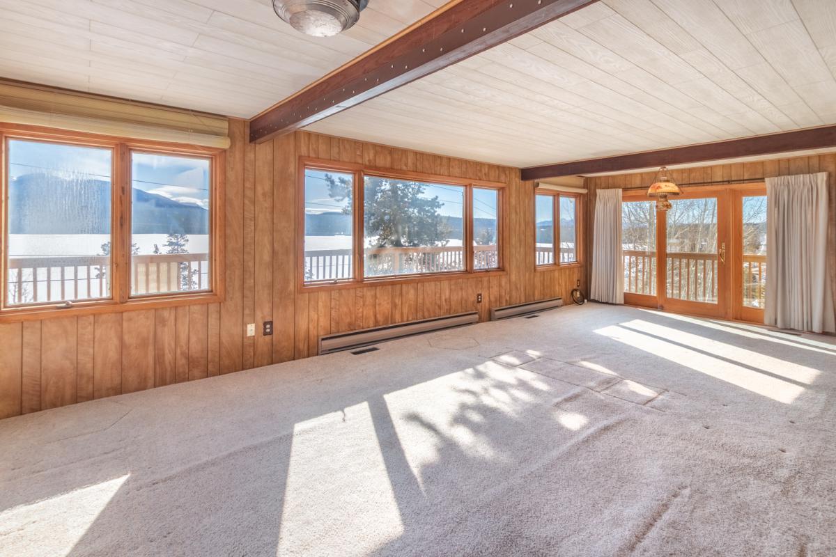 Breath-taking views across Shadow Mountain Lake towards the protected far shore which is Rocky Mountain National Park. Secluded on a hilltop, the home is on an acre and a quarter (3 lots on 3 acres) with a big circle driveway and lots of parking plus a big double garage. You can see everything; no one sees you. Great room with huge windows and large lake view deck. Also on the main level are the primary bedroom and bath with separate tub and shower. Upstairs is a giant sleeping loft which opens to a second private bedroom with bath. Views and privacy! Update to your own tastes R308557 Lyons Homestead: Lots K, L & M. # 12735 Highway 34. $1,095,000