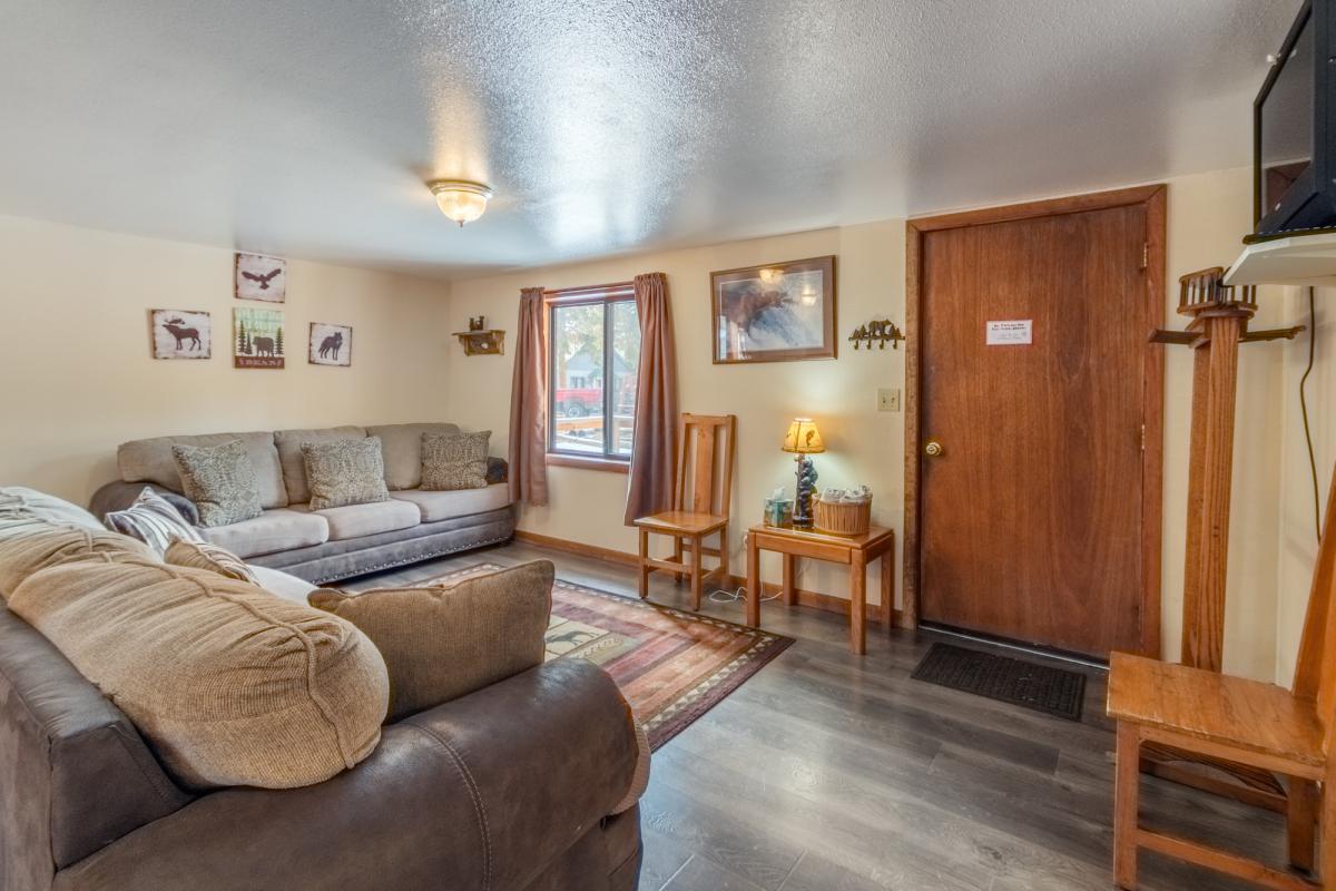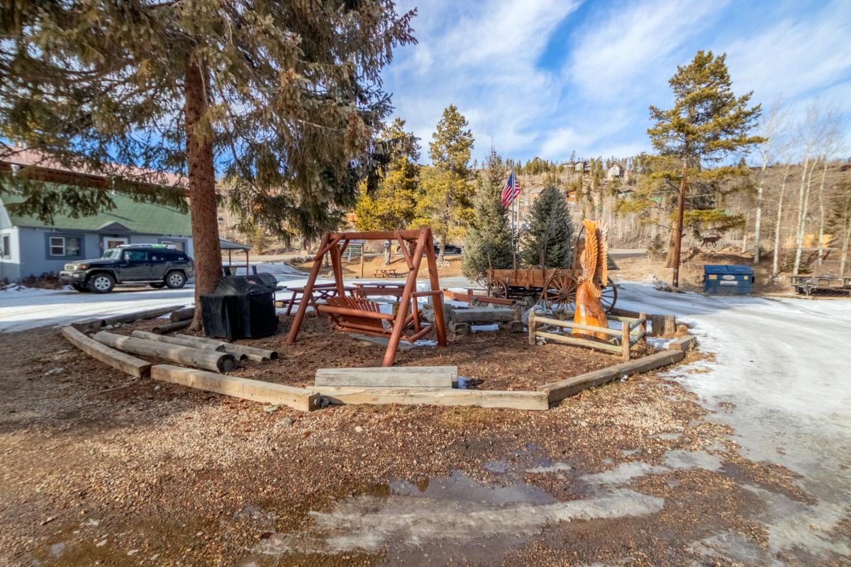 Each of the 8 individual cabins has an inviting living room, a gas heater/ "fireplace" with a visible flame, a kitchenette, a ¾ bath and a private bedroom. Property is landscaped with the cottages gathered around a circular driveway and the home with hot tub in back is on the west side of this large property. Almost 8000 sq. ft. of living and work areas plus a garage, right across Veteran's Park by a grocery store, near the Grand Lake Center. With commercial zoning, these could become individual retail shops - gathered around the courtyard. What a fun vision for the entrance to this year round resort town!