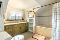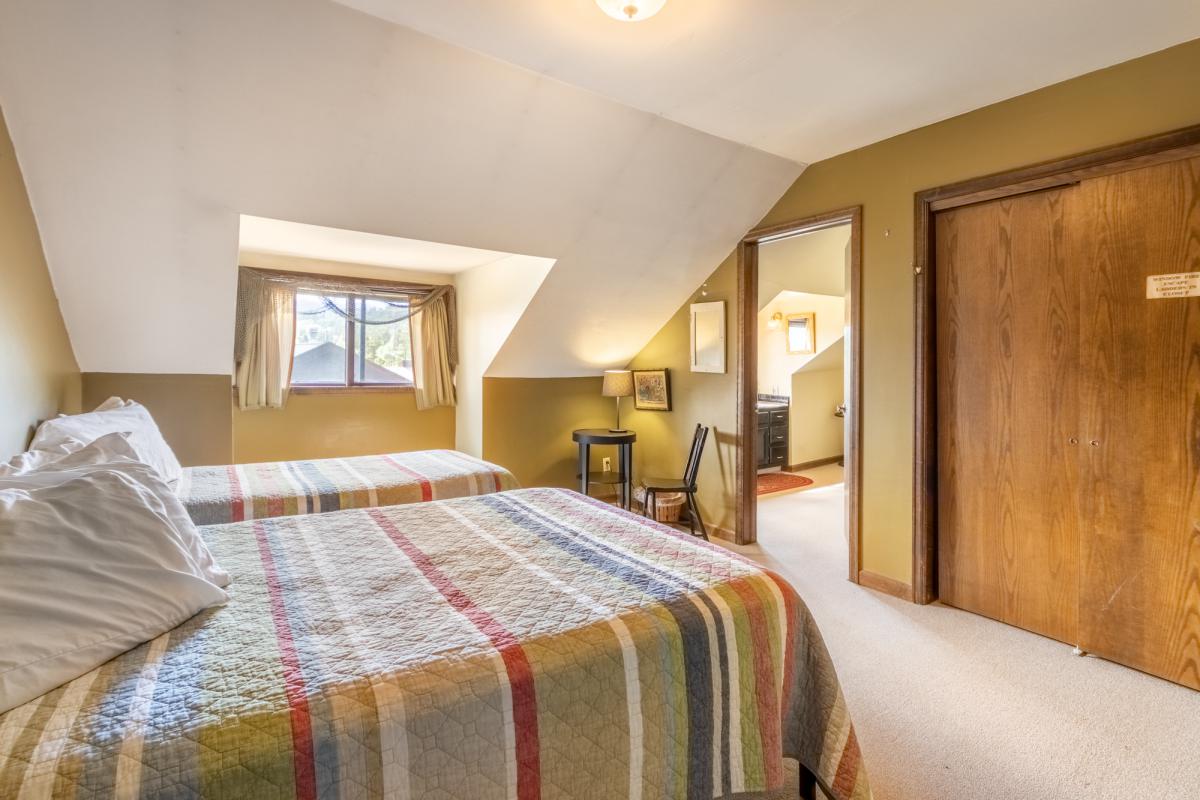 On the middle level are six furnished bedrooms, each overlooking the river and with a private bath. (You might enjoy leaving the windows open all of the summer, while you are inside.) Upstairs is the penthouse - large living area with fireplace and with a bedroom and bath at each end. An indoor staircase and an outdoor set of stairs provide a choice of access to
