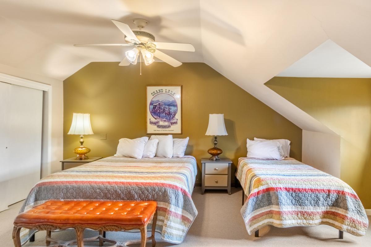Plenty of room for the whole family to be together. When someone wants a little private time, they would have their own room and of course, go outside. The beach and boardwalk are a block and a half away... This property is by the Continental Divide Trail, so a few hundred feet to the northwest, you hike across Tunnel Road and can walk up to the Cascade Falls trail in the National Park, or walk the mile to Adams Falls, looking out across Grand Lake almost the whole way...